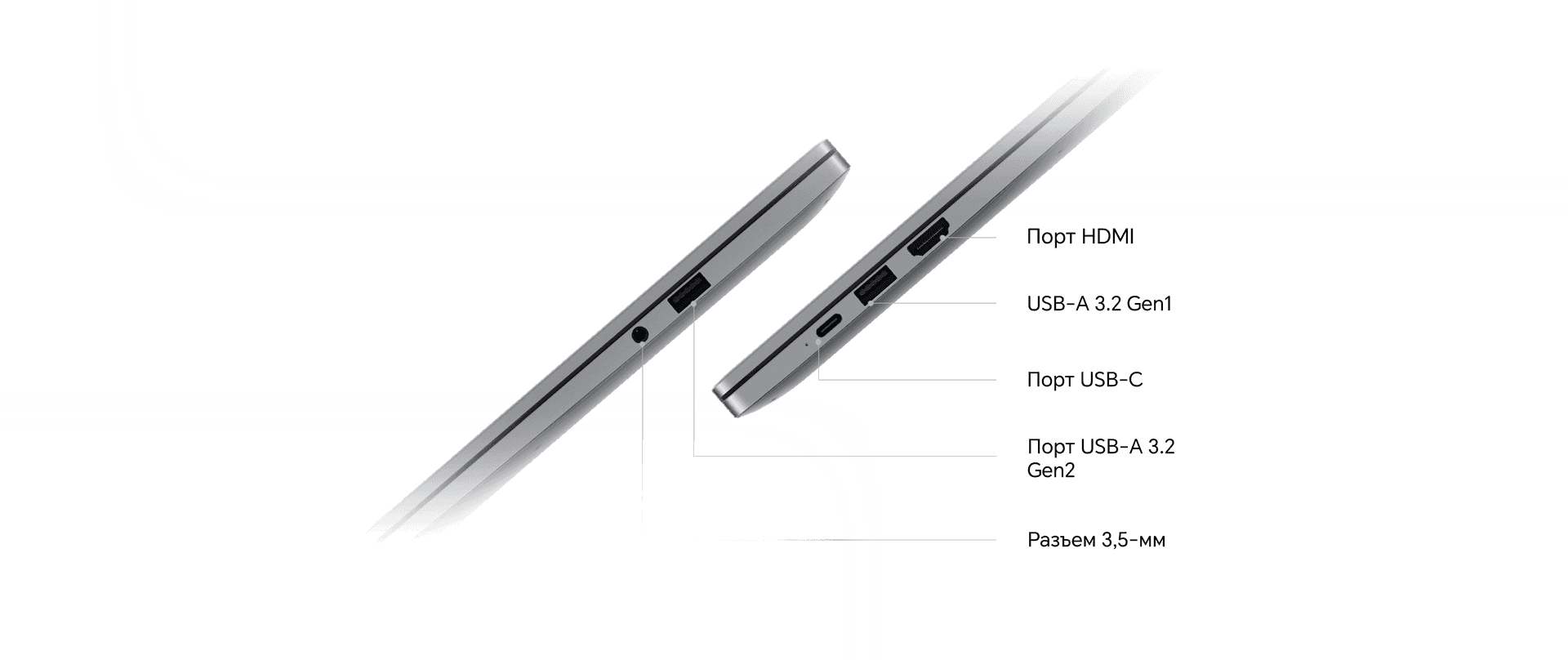 HONOR MagicBook X16 2025 оснащен одним многофункциональным портом USB-C, одним портом USB-A 3.2 Gen1 и одним портом USB-A 3.2 Gen2, а также HDMI и разъемом 3,5 мм для наушников и микрофона.